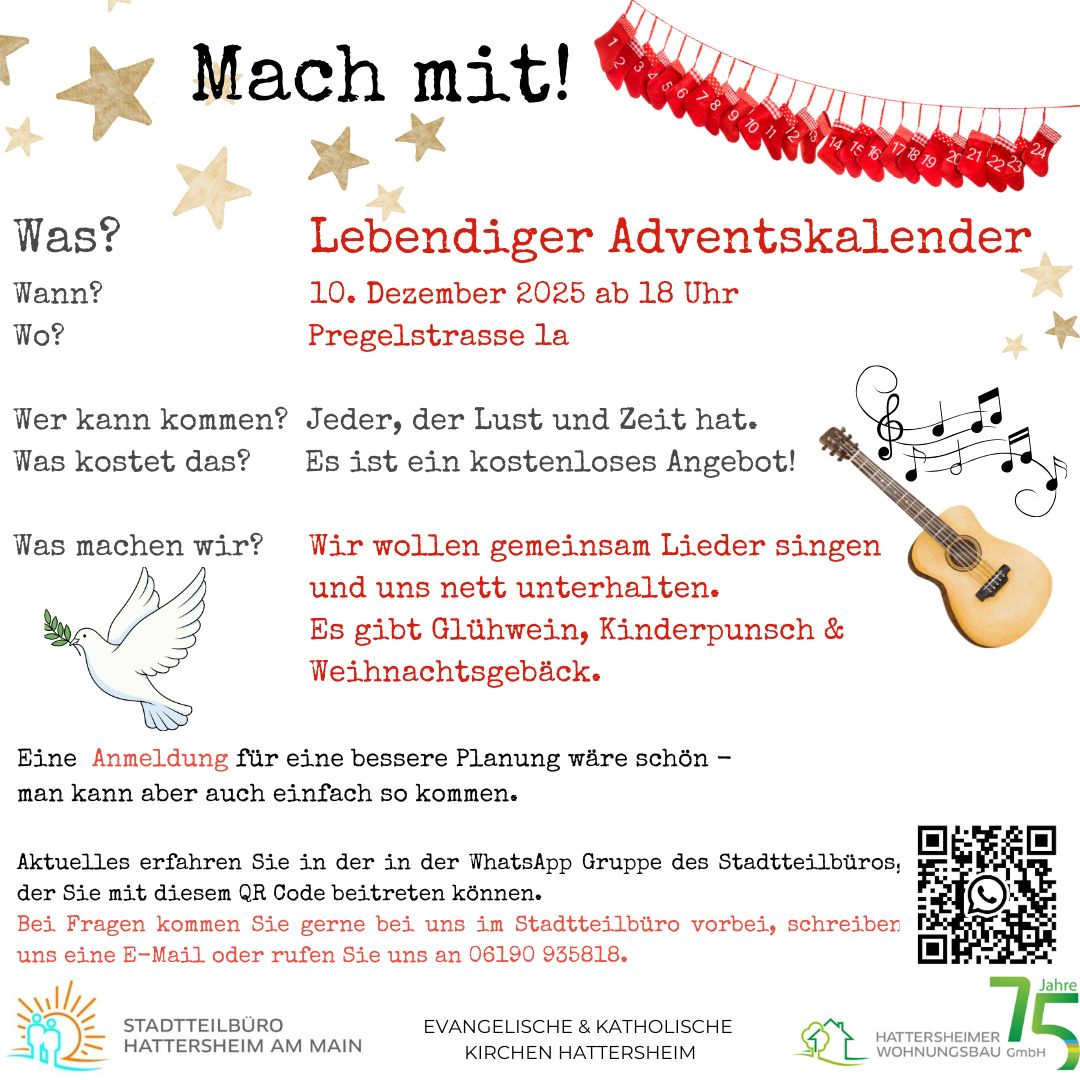 Am 10. Dezember 2025 ab 18 Uhr öffnen wir in der Pregelstraße 1a unser Fenster im Rahmen des Lebendigen Adventskalenders.